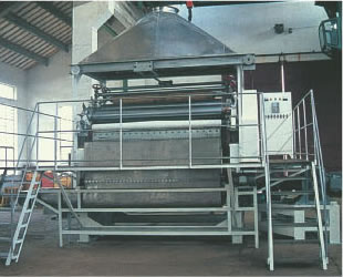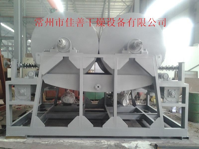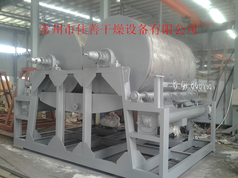 HG系列滾筒干燥機的工作原理是讓液體或泥漿狀物料在水蒸汽或其它熱載體加熱的滾筒表面形成薄膜.并在滾筒轉一圈的過程中便被干燥完畢.利用刮刀把產品刮下來.露出滾筒表面再次與原料接觸形成薄膜進行干燥。